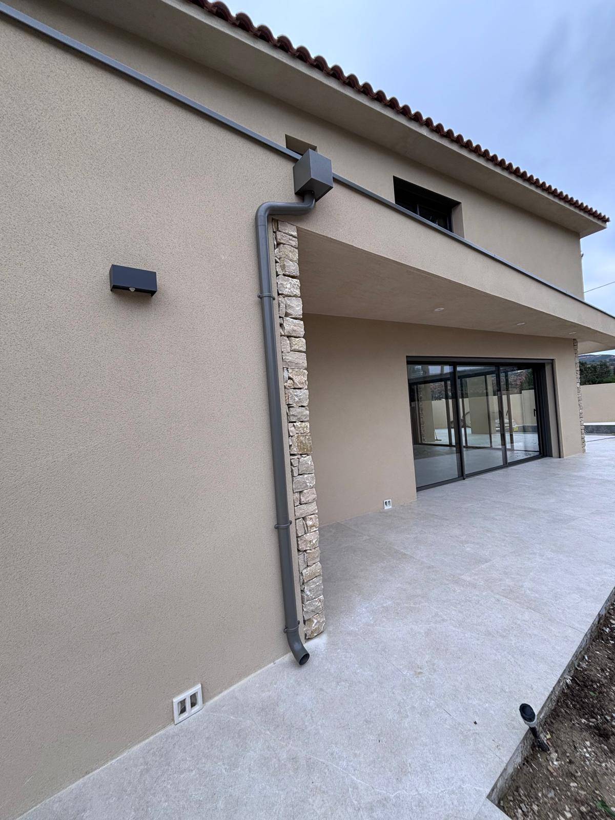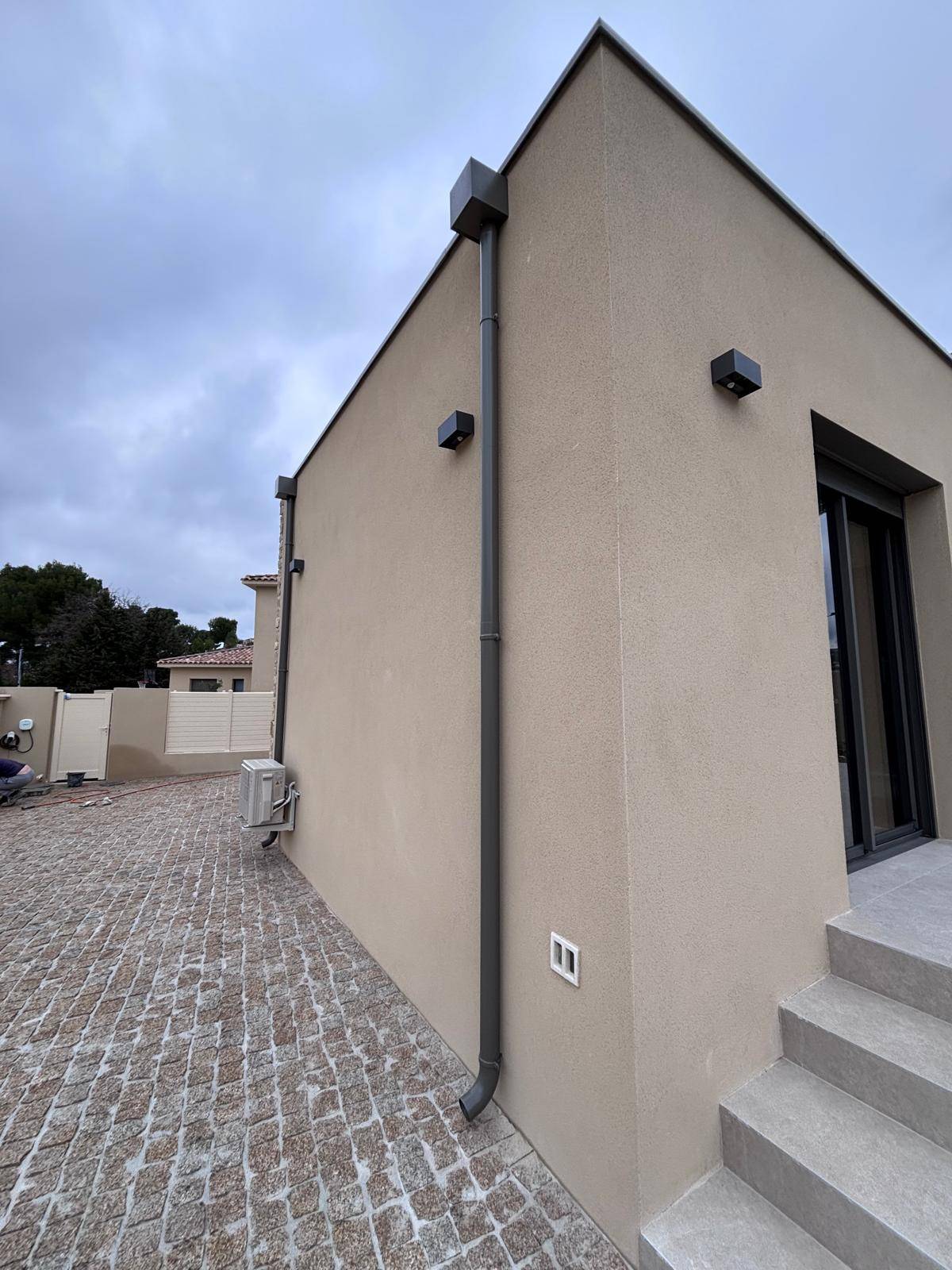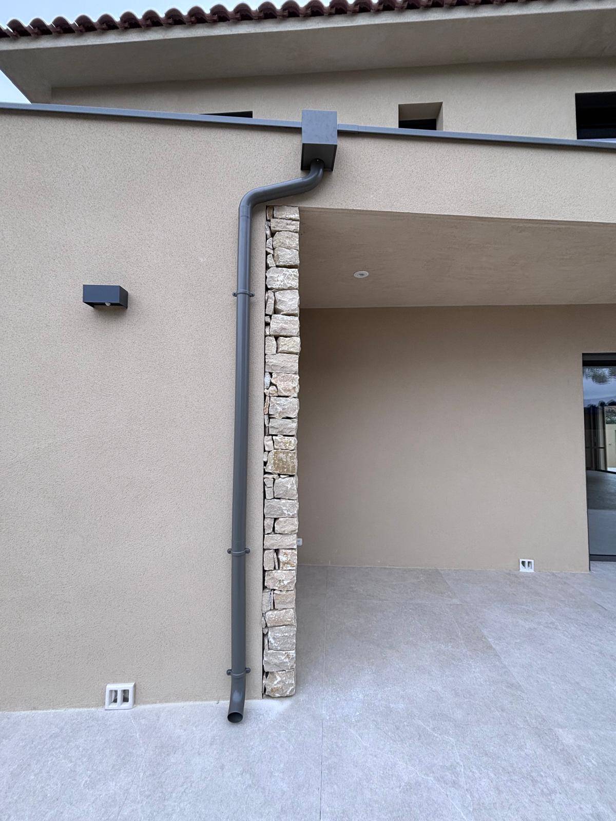 Il arrive cependant que certaines demandes spécifiques nous parviennent comme le chantier proposé ou notre client souhaitait que ses couvertines en aluminium ainsi que ses boites à eau et descentes d'eau pluviales aient un RAL spécifique que nous avons eu le plaisir de lui faire laquer.