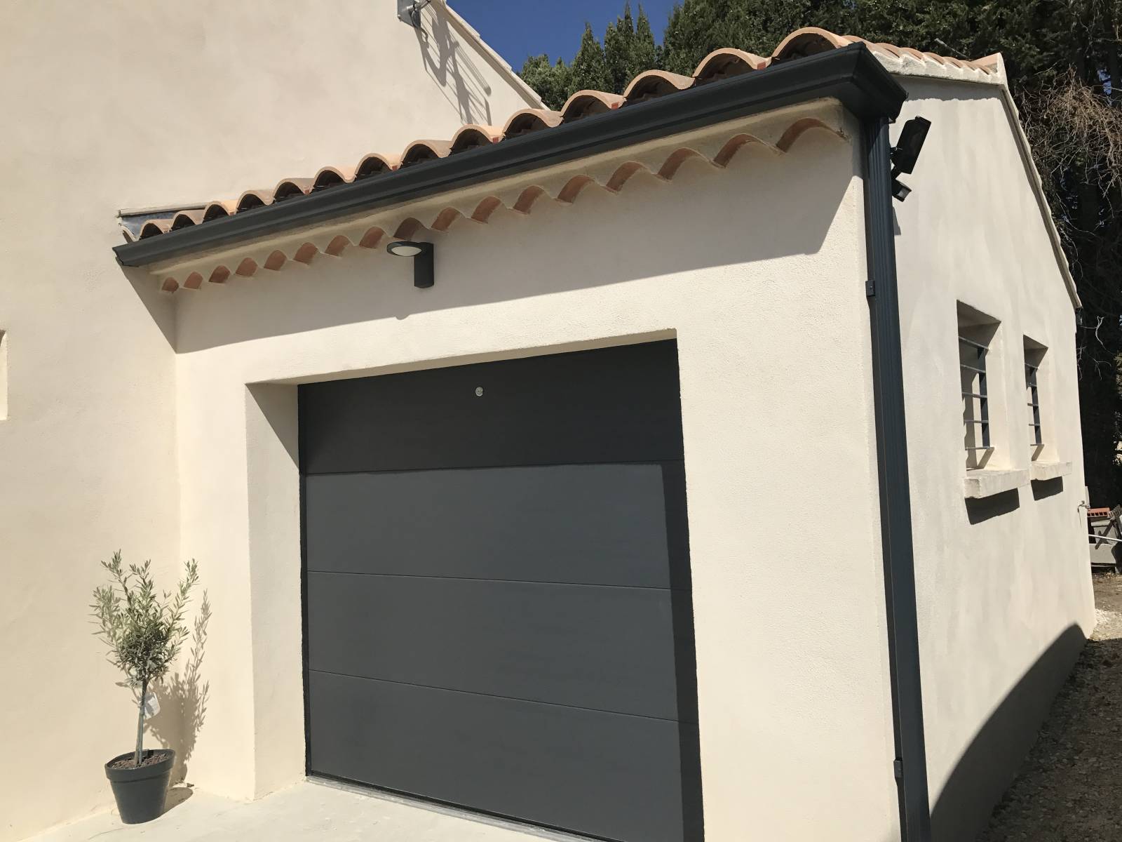 Après le passage de notre technicien, nous leur avons proposé la mise en place de gouttières aluminium en continu G300 de couleur anthracite pour rester dans l'esprit moderne de la pergola ainsi que des menuiseries aluminium de la même teinte.