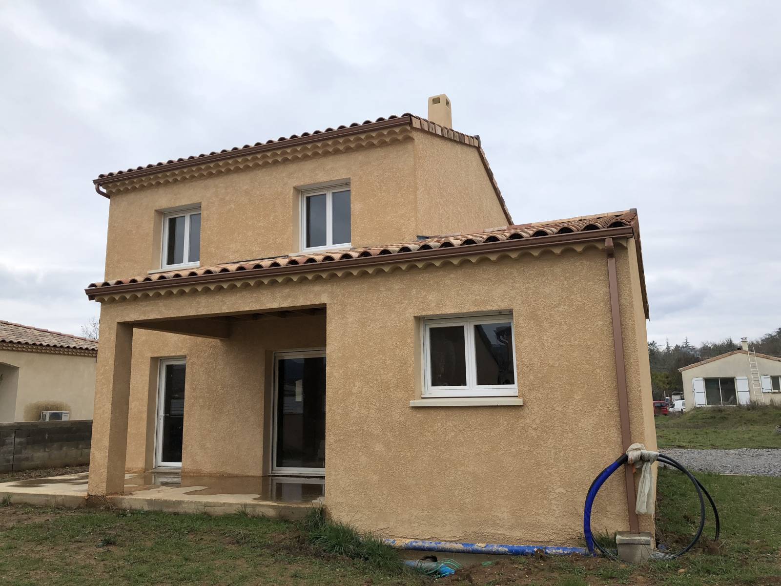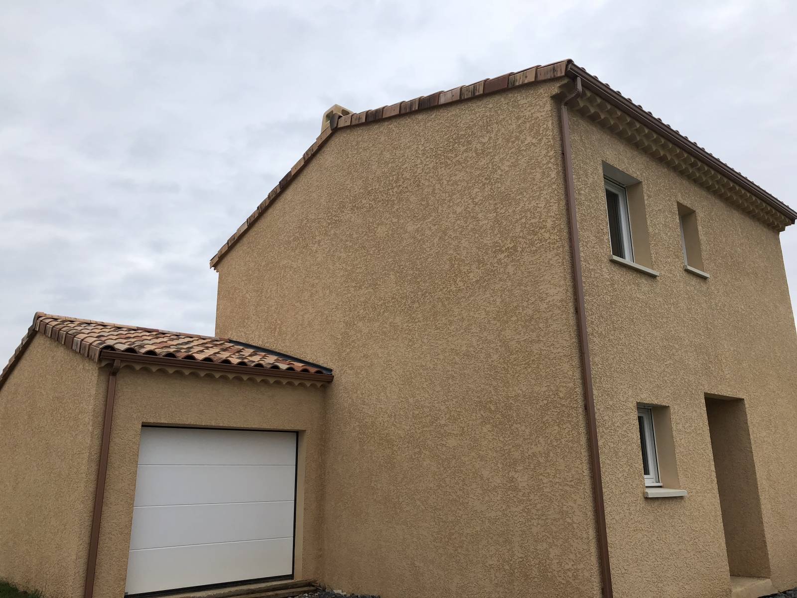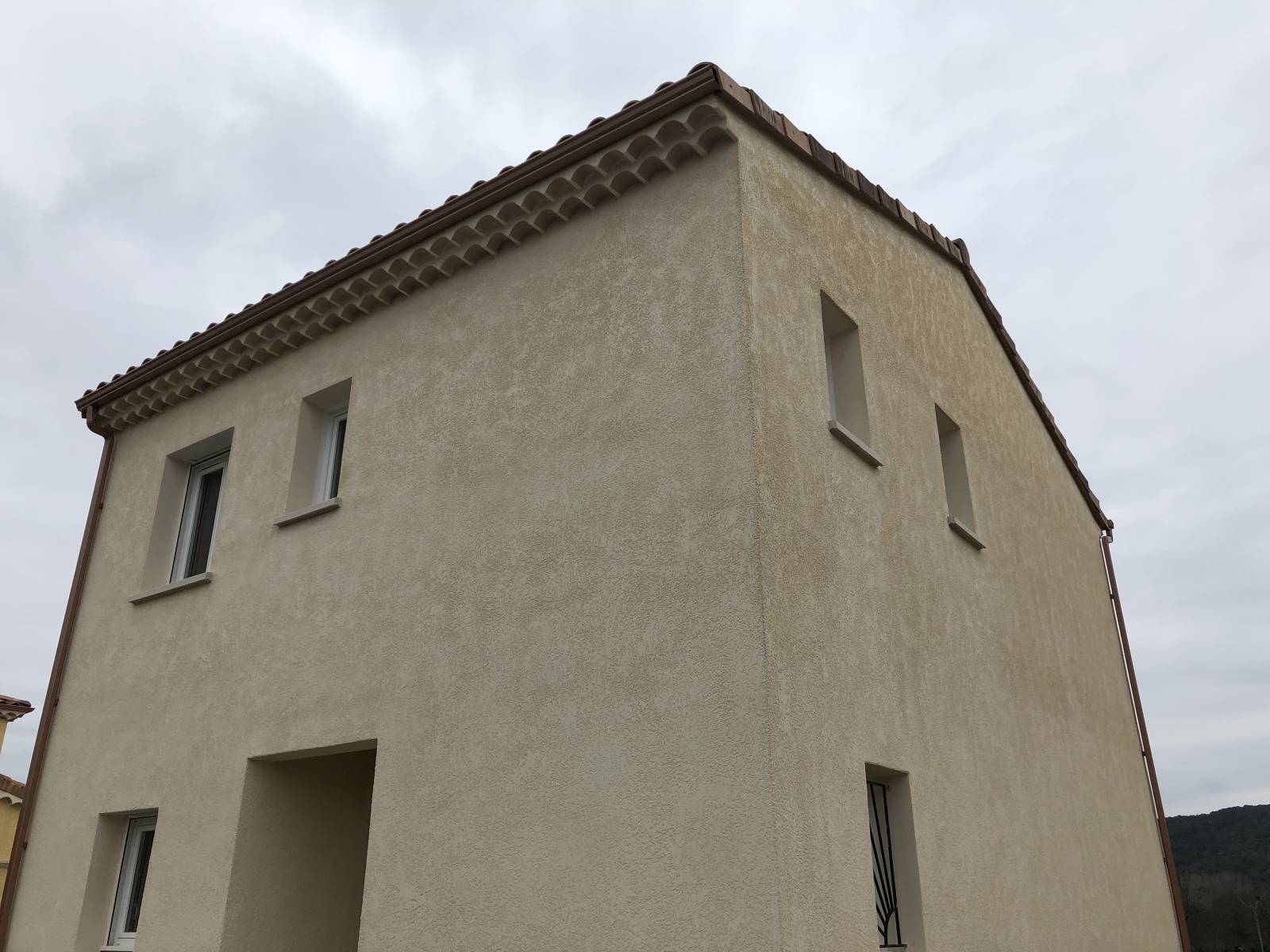 Le projet concerne la pose de gouttières aluminium sur deux villas qui sont récemment enduites et dont les propriétaires voulaient rapidement canaliser les eaux pluviales.
