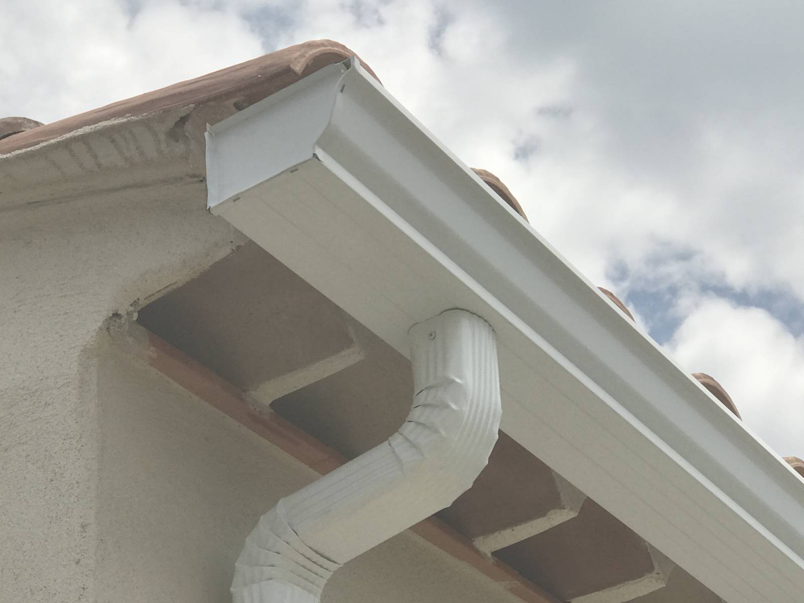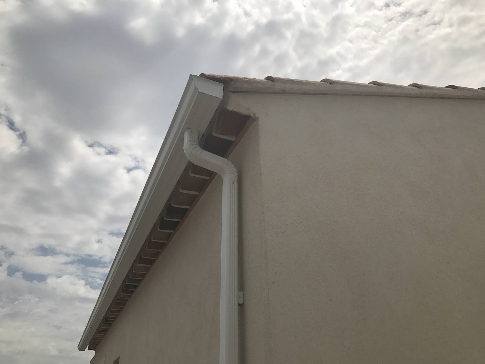 Notre technicien lui a préconisé des gouttières aluminium g325 en forme de corniche et des descentes rectangulaires 60x80.La couleur retenue par notre client est le blanc pour rester en harmonie avec la villa.