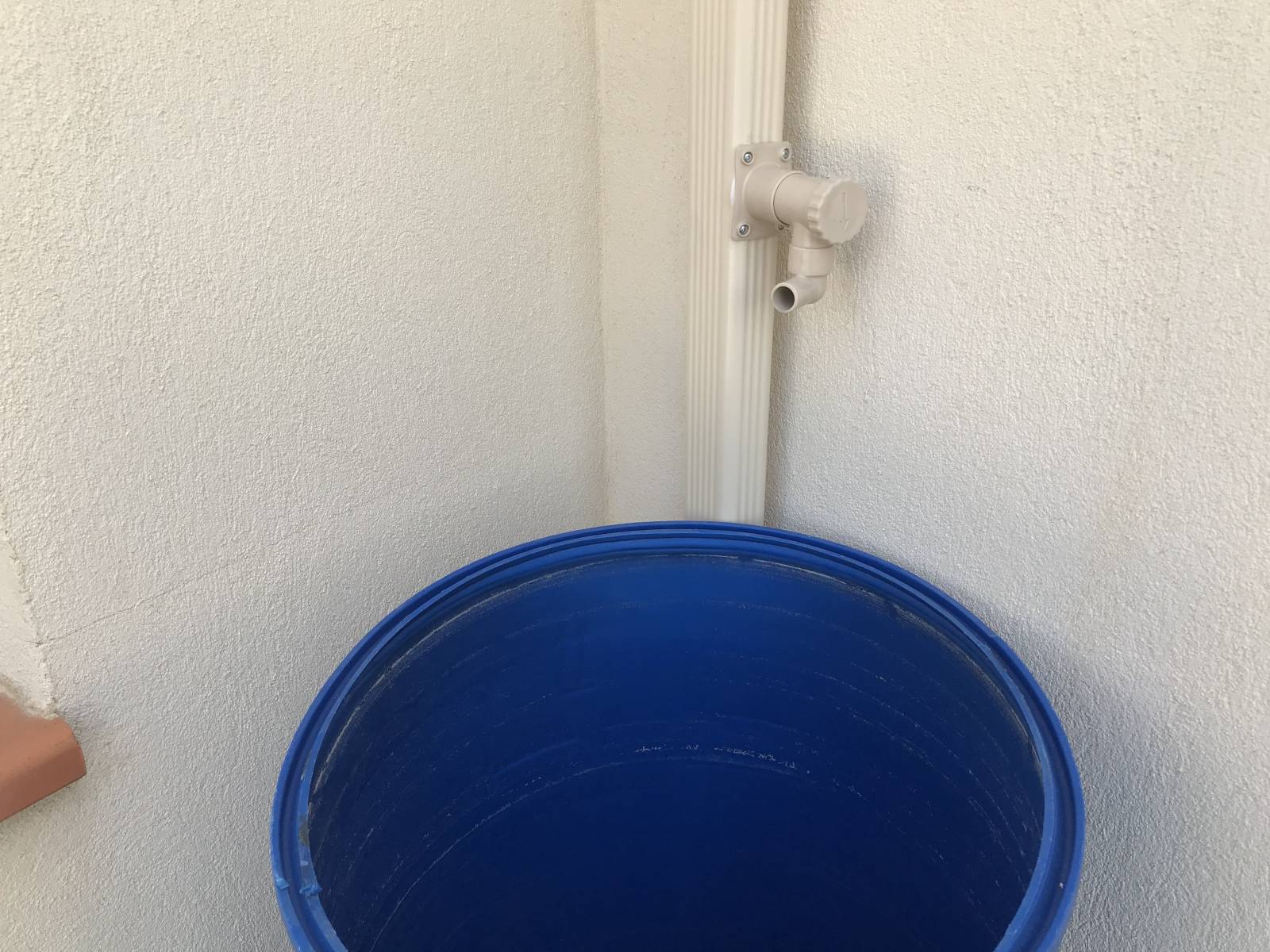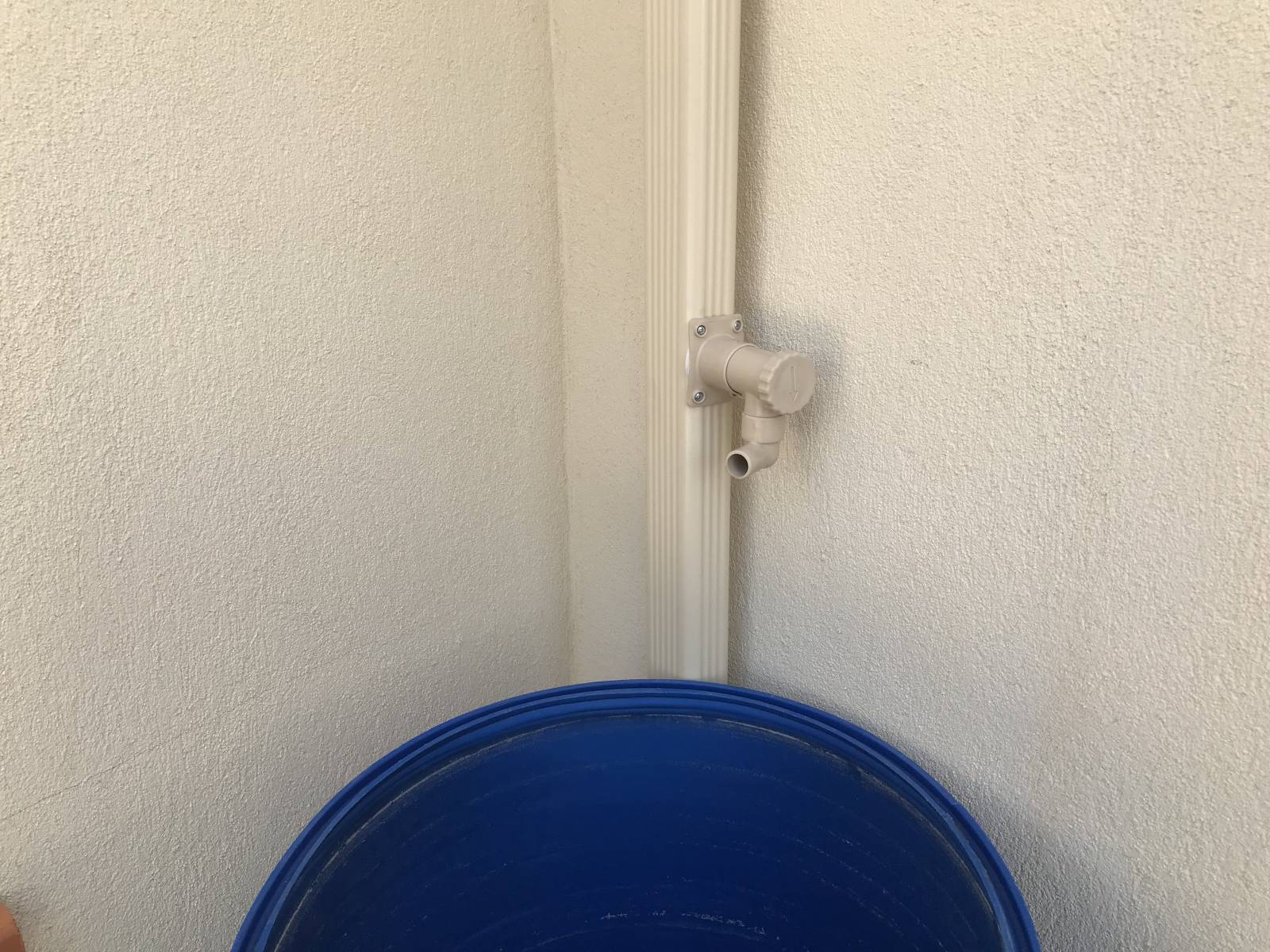 Les robinets récupérateur d'eau fixés sur un coté des descentes d'eau pluviales en aluminium restent discrets et permettent de desservir plusieurs récipients.