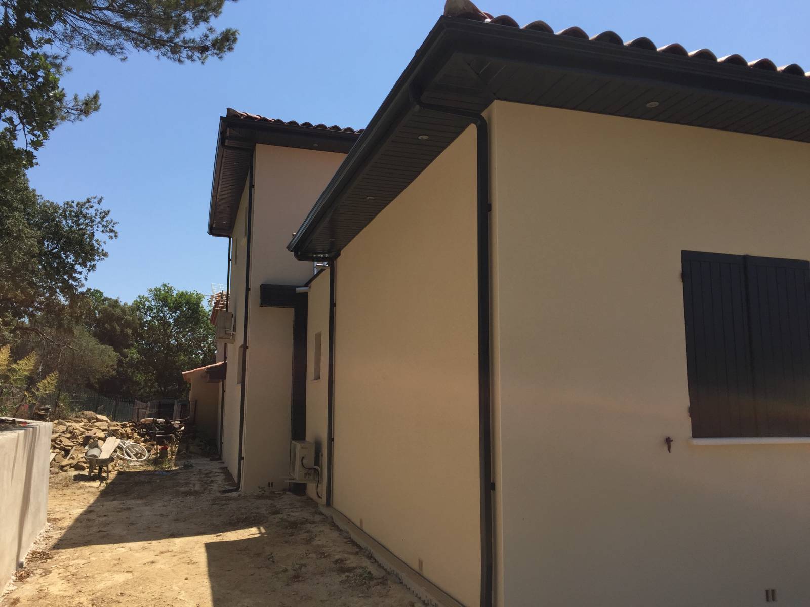 Plusieurs jours on été nécessaires pour la mise en oeuvre du chantier, la sous face aluminium et les gouttières aluminium anthracites ont totalement changés l'aspect de l'habitation et on vraiment mis en valeur celui ci.
