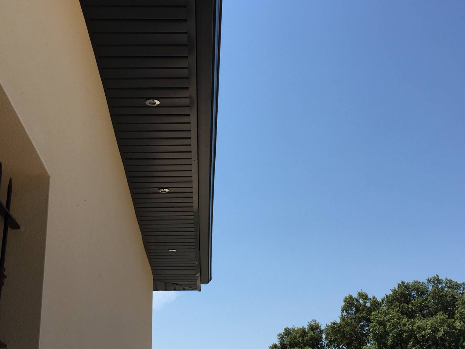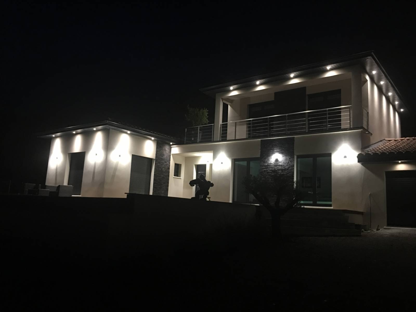 Il souhaitait également que nous lui incrustions ses éclairages extérieurs dans la sous face aluminium pour pouvoir mettre en valeur sa villa la nuit.